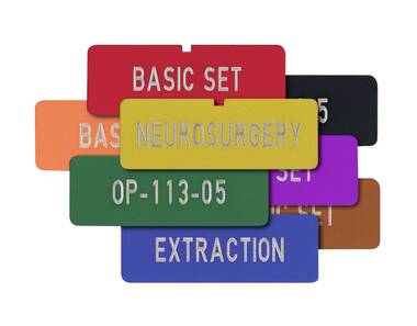 JG645U Zubehör Container, Kennzeichnungsschild, mini, Dental, Einweg, Aluminium, rot, Außenlänge: 50 mm, Außentiefe: 18 mm